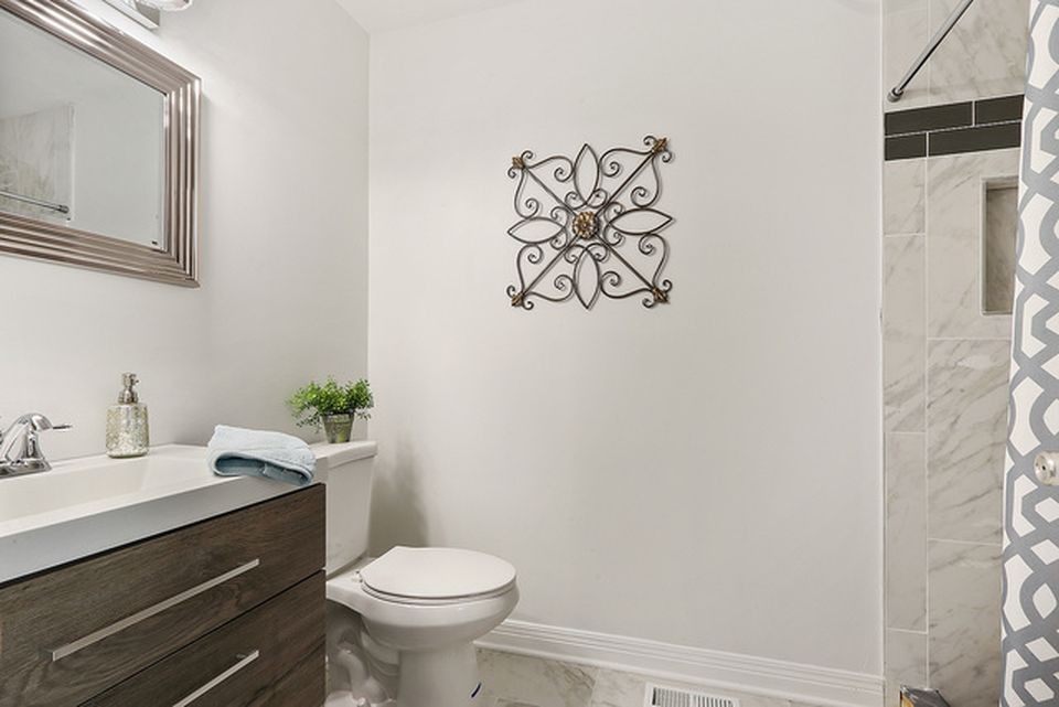 Absolutely stunning renovation! Beautiful 4 bedroom, 2.1 bathroom split level with loads of updates throughout! ALL NEW kitchen features 42" white shaker style cabinets with brushed nickel hardware, new sparkling white quartz counters, designer tile back splash, new fixtures, and all new stainless steel appliance package! Large Living & Dining rooms with all new flooring & lighting package! The lower level family room includes a floor-to-ceiling brick, wood burning fireplace with recessed lighting and glass slider out to to the concrete patio! Both full bathrooms have been completed remodeled with new modern vanities & custom tiled showers! Spacious Master Suite with Walk-in Closet & private master bathroom! NEW Furnace & Water Heater! Updated Electrical & Plumbing! Attached 2-car garage, near Woodgate Park and much more!